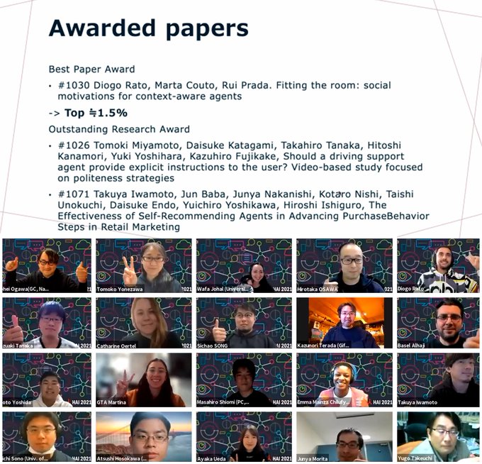 The paper “Fitting the room: Social Motivation for Context-aware Agents” by Diogo Rato, Marta Couto and Rui Prada was awarded the Best Paper Award at the Human-Agent Interaction 2021.