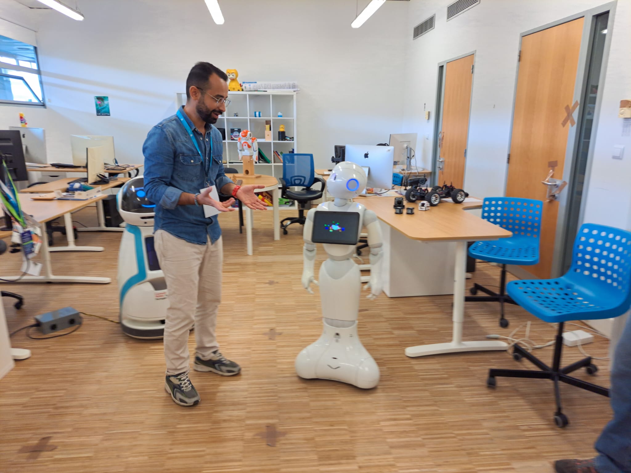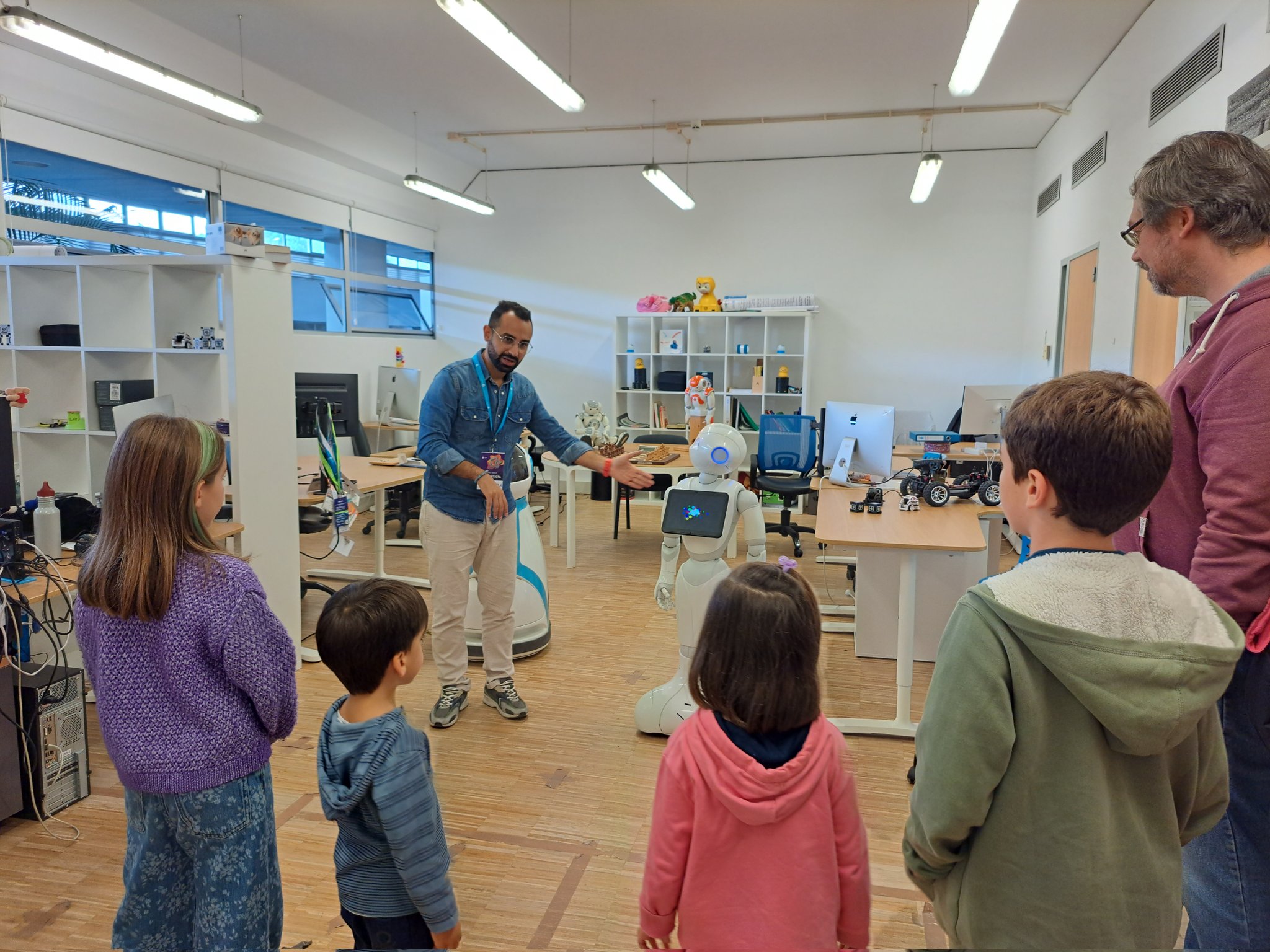 Throughout the day, the GAIPS LAB (Research Group on AI for People and Society) warmly welcomed visitors, offering them a unique chance to meet robots such as Pepper, ASTRO, and others. Social robots can simulate human-like behaviors, interact with humans, and even give the illusion of life. Under the guidance of INESC ID researcher Ali Kordia, attendees had the opportunity to interact with the robots, who can perform tasks such as playing games with children, dancing, or even support elderly people in daily tasks. This event provided a distinctive chance for both children and adults to spend time with these amazing robots.